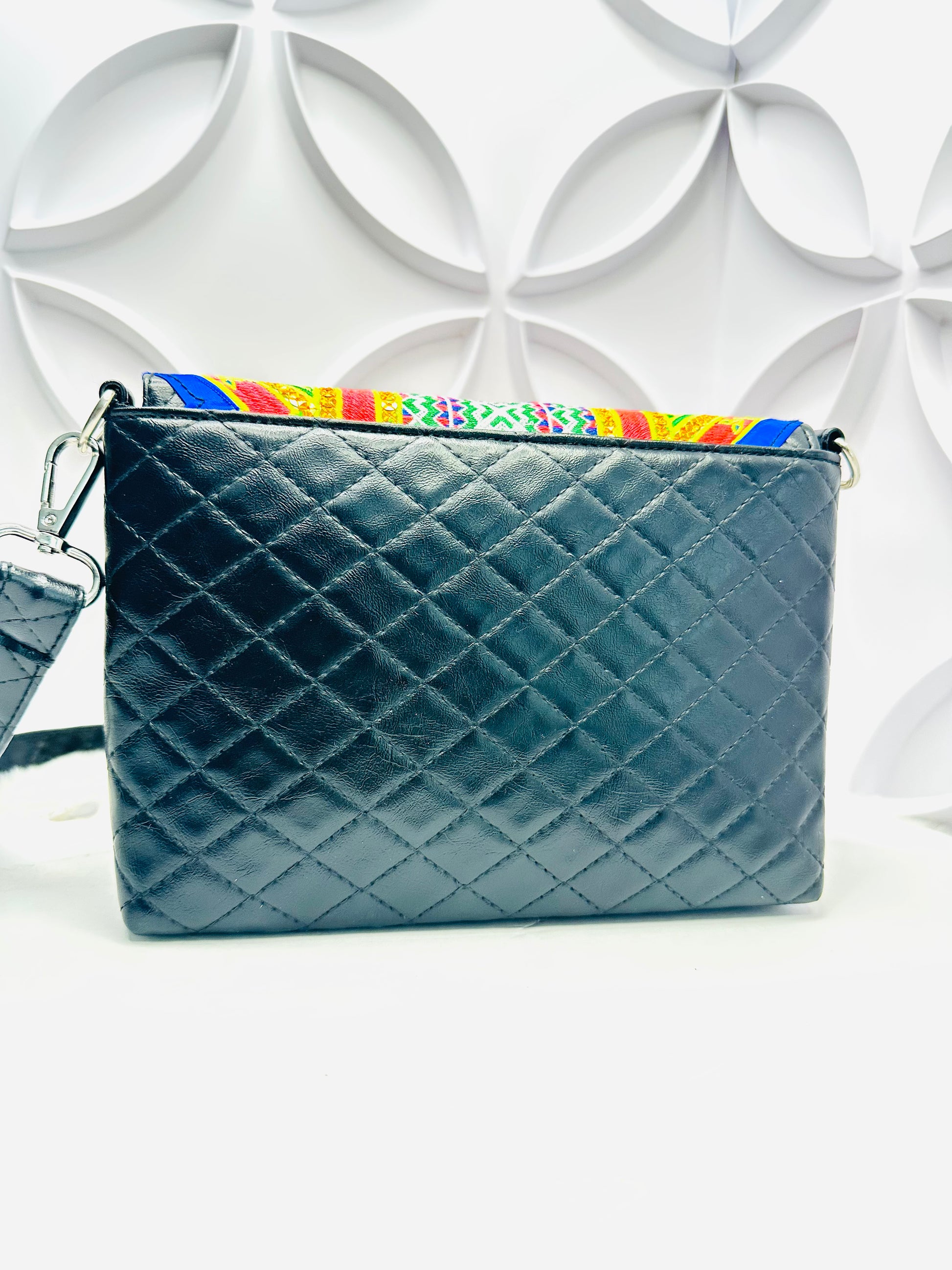 A beautiful machine paj ntaub exclusively designed by LLUXE Silver. Includes removable strap that can be worn as a crossbody, long purse or an underarm purse.